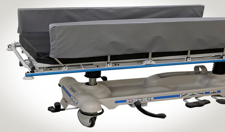 Our standard Side Rail Stretcher Pads attach securely over existing siderails with no shifting and are easily removed when needed. Covers are made of a waterproof durable medical-grade, easy to clean polyurethane coated Vynmed™ vinyl, which is soft to the touch and never brittle.