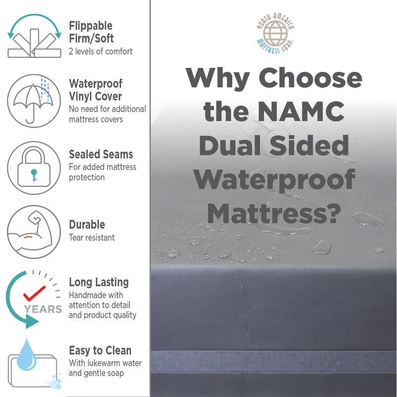 Designed for the demands of skilled nursing facilities, assisted living, and home caregiving, this dual-sided waterproof incontinence mattress delivers dependable protection without sacrificing comfort. A soft yet durable vinyl cover fully encases the mattress to guard against urine, spills, and everyday accidents, while a flippable design lets caregivers choose between a firm or soft feel.