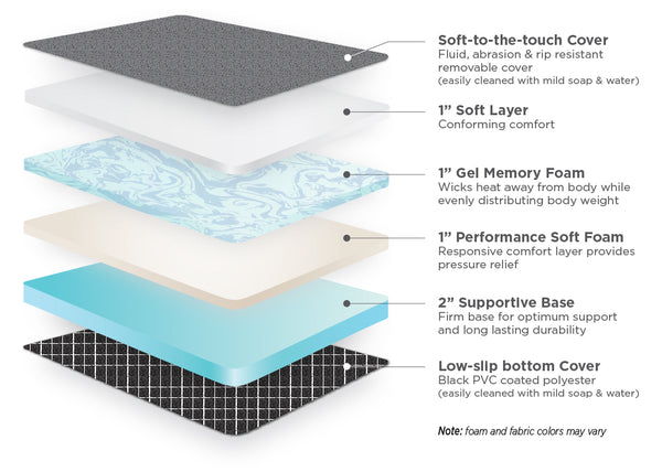 Our water and abrasion resistant polyester top fabric, as well as our rip resistant low-slip polyurethane coated nylon side and bottom fabric combine for a durable product that stands up to regular use. Easily removable zippered covers make convenient hand cleaning with light soap the perfect solution, air dry.