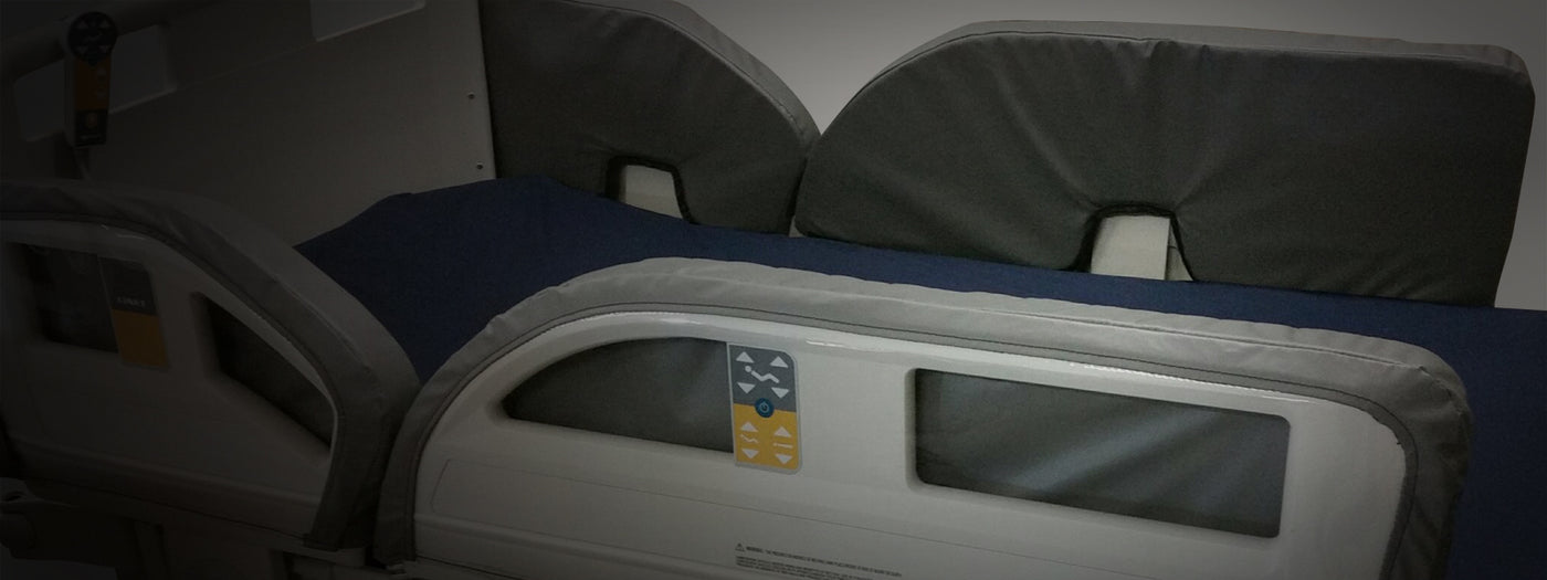 Our standard Side Rail Stretcher Pads attach securely over existing siderails with no shifting and are easily removed when needed. Covers are made of a waterproof durable medical-grade, easy to clean polyurethane coated Vynmed™ vinyl, which is soft to the touch and never brittle.