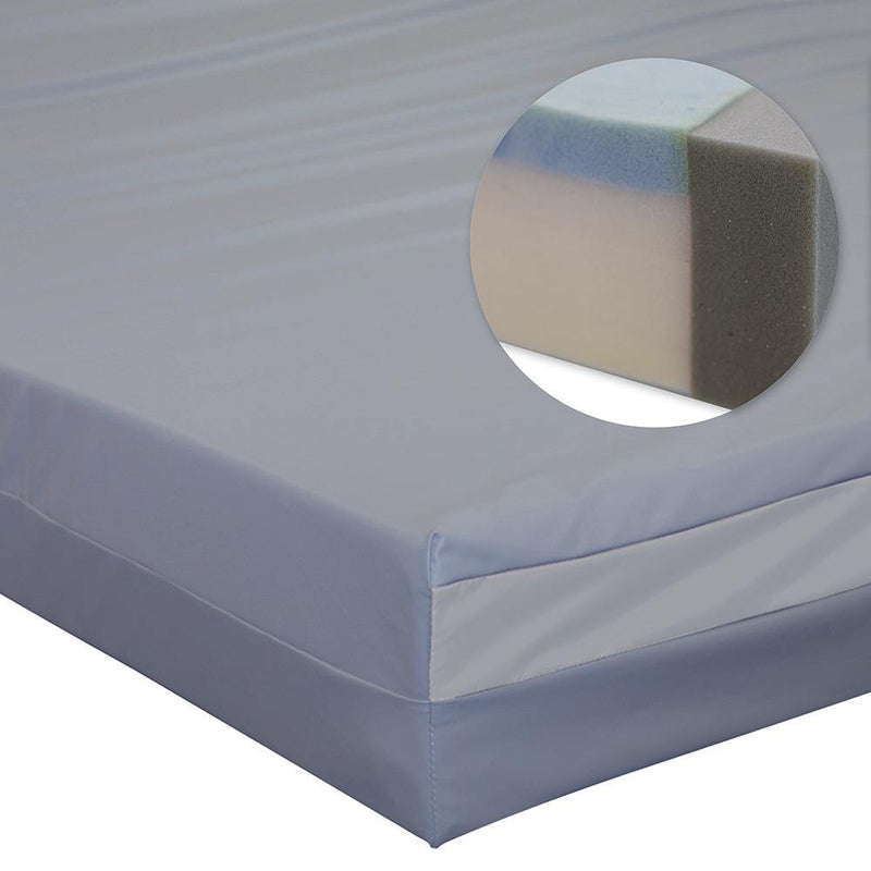Our Secure Tuff mattress is a Nymed™ polyurethane coated healthcare nylon top, (210 denier; soft-never brittle) and a Vynmed™ Tuff healthcare polyurethane coated vinyl bottom. The fluid proof, anti-bacterial, anti-fungal, stain resistant cover protects the multi-layered, multi density convoluted foam core. With its High resiliency 1.8lb density 45ILD foam and FirmEdge™ passive restraint system you can be assured that comfort, durability and protection. All of our mattresses come with a 12 month standard Warranty and meet the CFR 1633 fire test requirements.